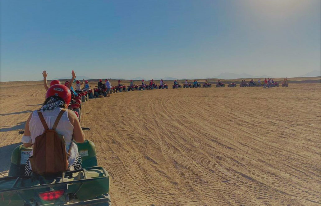 As you drive, the desert unveils itself, revealing the rhythmic patterns of the dunes and the silent stories of the landscape. Your expert guide will lead you to the most picturesque spots, where the vastness of the desert makes the perfect canvas for your memories. Two carefully chosen stops allow you to not only rest and cool down your quad moto but also to capture the essence of the desert with your camera, creating a lasting record of your journey. This 2-Hour Moto Safari Trip isn't just a tour; it's an immersion into the vibrant soul of the desert, a blend of excitement and tranquility, and an encounter with the heart of Hurghada's natural wonders. Book now and step into the narrative of the desert, where every dune holds a new discovery and every moment is an invitation to adventure."