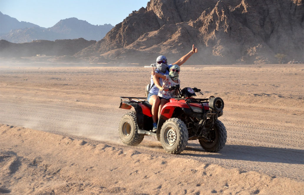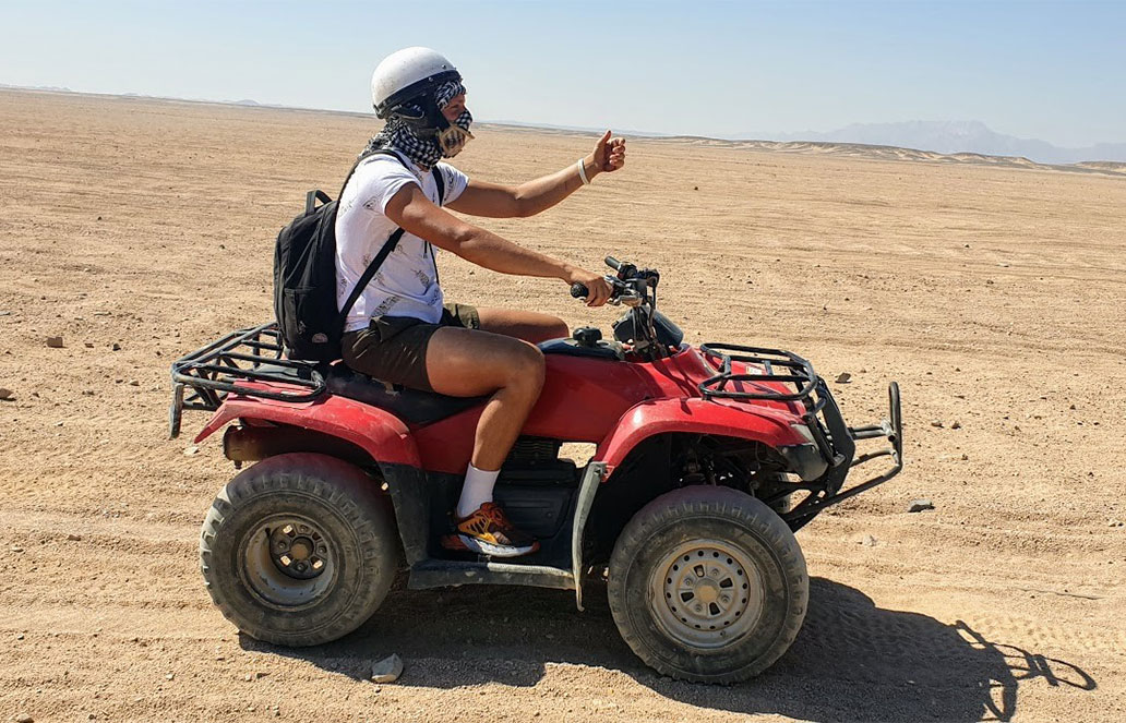 Your personal adventure guide will escort you to the starting point where the thrill of the evening awaits. There, , you'll be briefed by your guide on the journey ahead and how to master the quad moto for an exhilarating ride through the desert's heart. Feel the rush of excitement as you start your engine and follow your guide through the rugged beauty of the Red Sea desert.